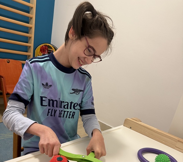 A kézterápia és manuális fejlesztés egyéni, célzott foglalkozás, amelynek fő célja a kéz finommotorikus képességeinek és a szem–kéz koordinációnak a fejlesztése. Ezek az alapvető készségek elengedhetetlenek ahhoz, hogy a gyermek önállóan tudjon öltözködni, enni, írni vagy használni mindennapi eszközöket.